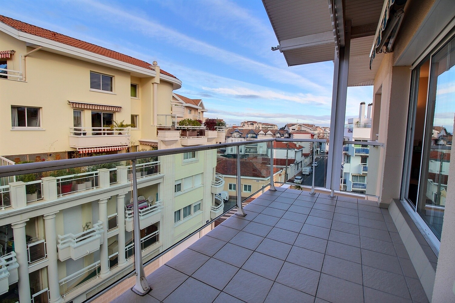 Il se compose d'une entrée avec un grand placard, une cuisine indépendante donnant sur un grand balcon, une pièce à vivre lumineuse avec deux baies vitrées toutes deux avec balcons, deux grandes chambres avec rangement dont une avec un dressing. Une salle d'eau avec un wc et un wc indépendant.